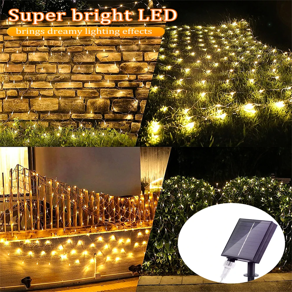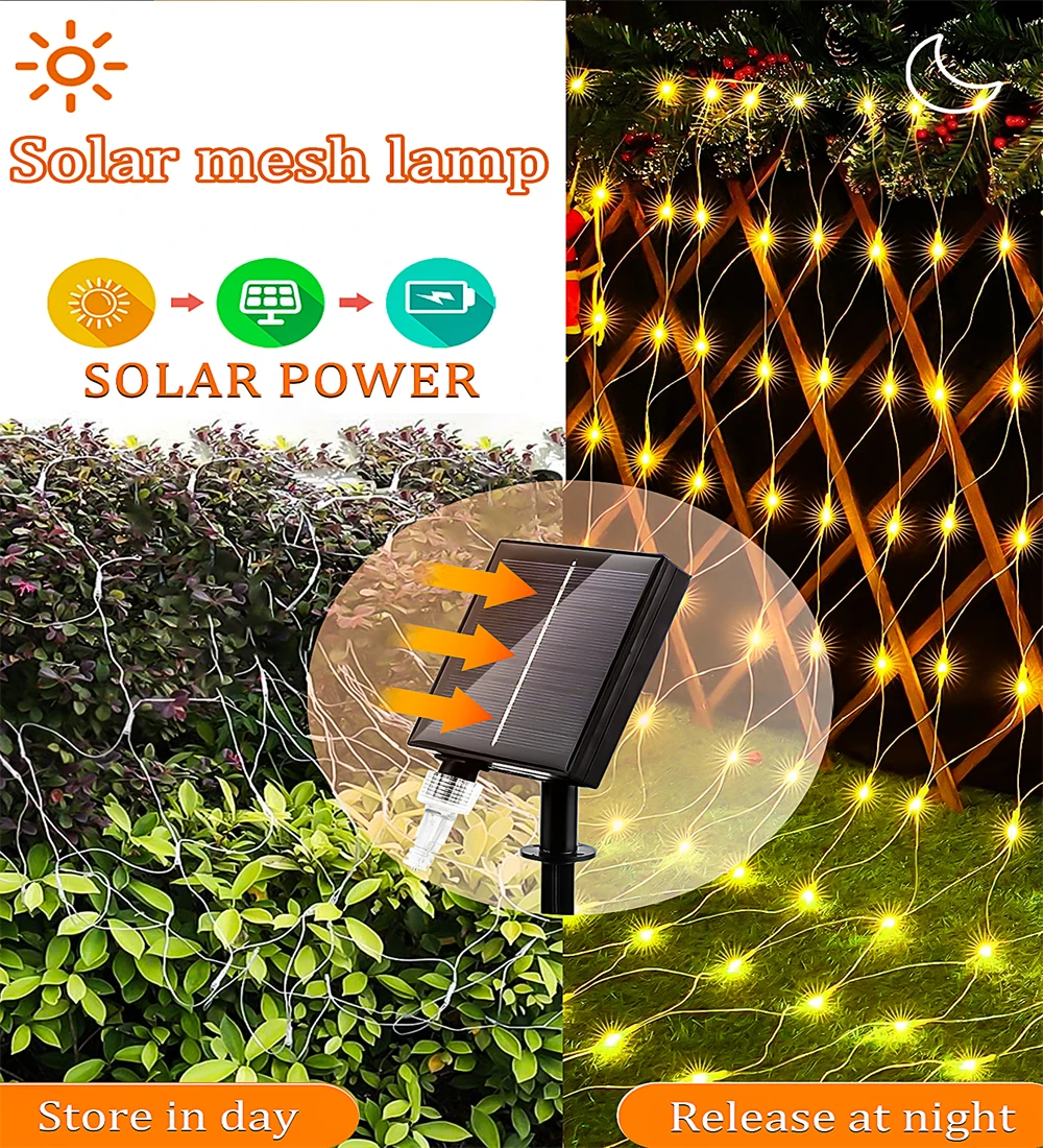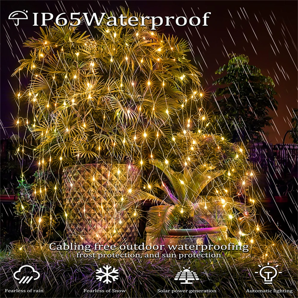 With IP65 waterproof and durable design, the solar lights can be used for outdoor and indoor, not worry about short circuit or weather damage. Safe to use and environment friendly, extremely low heat, no radiation, solar powered net mesh fairy lights is touchable and safe to children or pets.