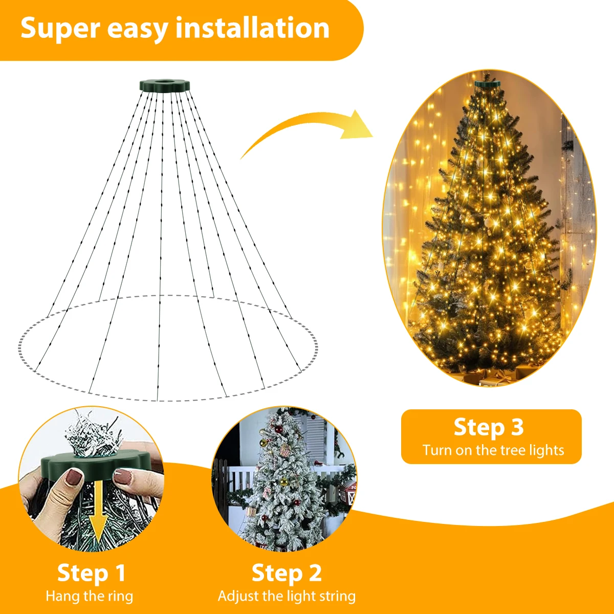 USB port Specially contoured to hug your tree’s shape. Secure the top ring, arrange each string light in sequence, then release the cord for effortless vertical draping. No more tedious winding like old-fashioned lights.