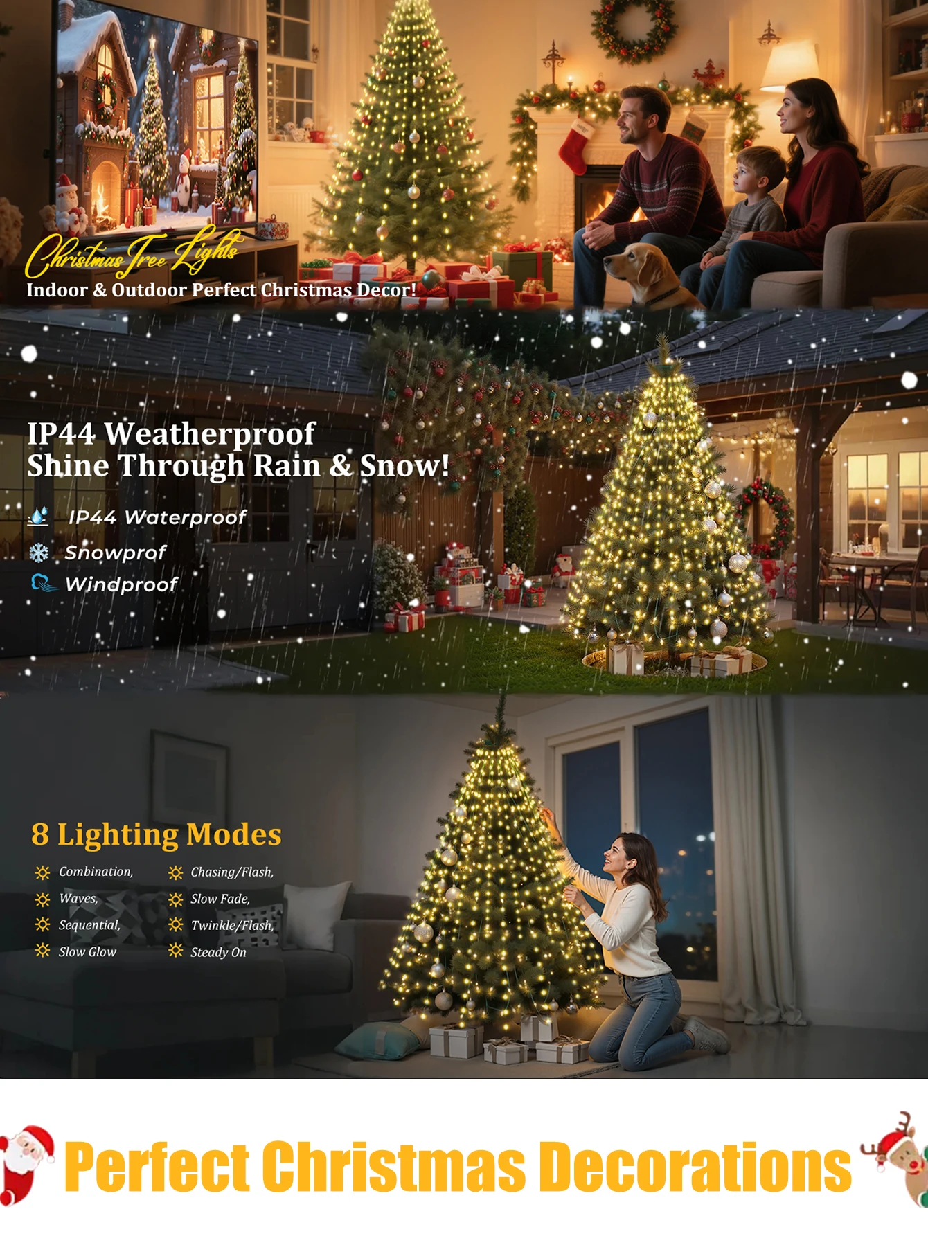 Enjoy 8 different lighting effects with these Christmas tree lights! Simply use the button on the plug to switch between modes: Combination, Waves, Sequential, Slow Glow, Chasing/Flash, Slow Fade, Twinkle/Flash, and Steady On – creating a wonderful fairy light show! With multiple flashing modes and diverse lighting effects, these lights are perfect for different scenes and will add a magical festive touch to your Christmas tree and holiday decorations..